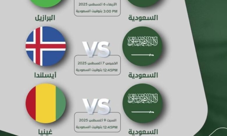 وفي ثاني المباريات، يلتقي المنتخب السعودي مع منتخب آيسلندا يوم الخميس 7 أغسطس 2025، عند الساعة 12:45 ظهراً بتوقيت السعودية، قبل أن يختتم مبارياته في الدور الأول أمام منتخب غينيا يوم السبت 9 أغسطس 2025، في التوقيت ذاته.