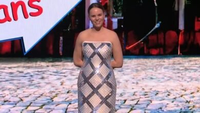 الأزرق السماوي: برز في إطلالة أنابيلا هلال، حيث اختارت قميصاً بهذا اللون مع بدلة نسائية، ما أضفى لمسة من الانتعاش والحداثة.