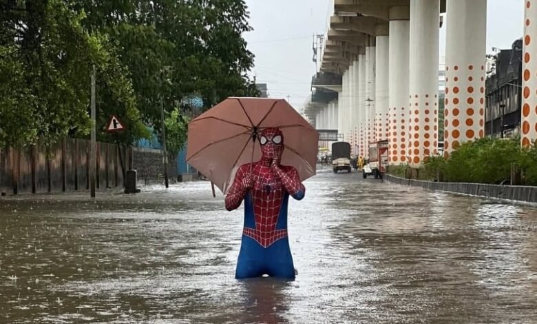 شهدت مدينة مومباي واحدة من أغرب المشاهد التي لفتت الأنظار وسط الفيضانات التي خلفتها الأمطار الغزيرة، بعدما ظهر رجل متنكراً بزي شخصية “سبايدر مان” الشهيرة وهو يحاول المساعدة في تصريف مياه الأمطار المتراكمة في أحد الشوارع المغمورة بالمياه.