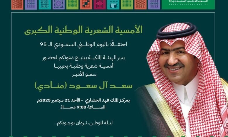 سعد آل سعود يدشن احتفالات الهيئة الملكية باليوم الوطني بأمسية شعرية وطنية كبرى – أخبار السعودية