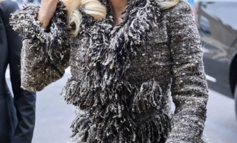جاءت الإطلالة على شكل بدلة مصنوعة من الفرو القطني المعروف باسم Bouclé من دار Giambattista Valli تجاوزت قيمتها 3,700 دولار، مع سروال واسع يضيف مساحة للحركة ويكسر رتابة البدلة الرسمية، وحقيبة من لويس فويتون تكمل المظهر وتضفي لمسة فخامة كلاسيكية.