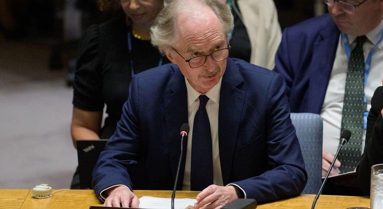 أكد المبعوث الأممي أن السلطات الانتقالية والشعب السوري يحاولان إجراء عملية انتقالية “في مواجهة تحديات وحقائق معقدة وصعبة لم يسبق لها مثيل في أي مكان تقريبا”، وقد شهدت البلاد “تغييرات ملحوظة في فترة زمنية قصيرة”.