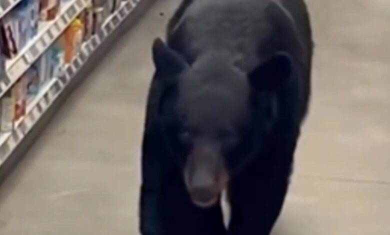 شوهد الدب على مدى ساعات يتجول في مواقف السيارات قرب الطريق السريع، قبل أن يدخل المتجر.