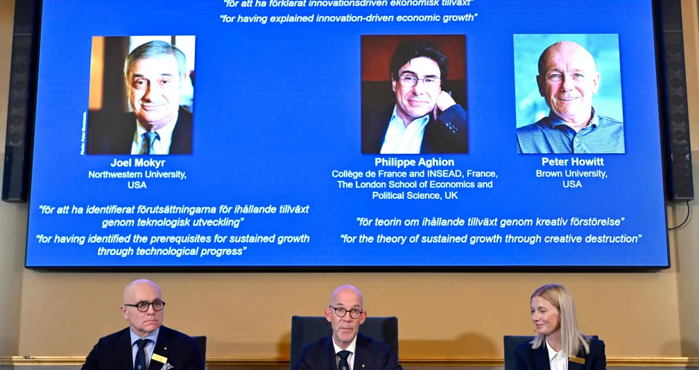 اختُتمت، أمس، فعاليات موسم جوائز نوبل لعام 2025 بمنح جائزة الاقتصاد إلى الأميركي جويل موكير والكندي بيتر هاويت والفرنسي فيليب أغيون، تقديراً لإسهامهم في تفسير