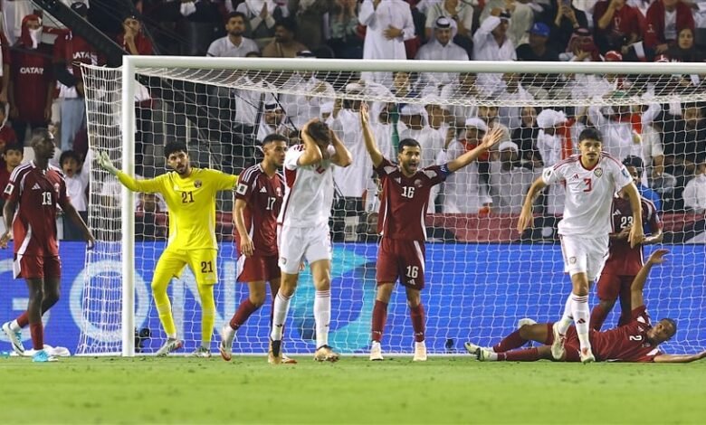 أنهى منتخب الإمارات الشوط الأول من مباراته أمام نظيره القطري بالتعادل السلبي في الجولة الثانية من تصفيات الملحق الآسيوي المؤهل إلى مونديال 2026.