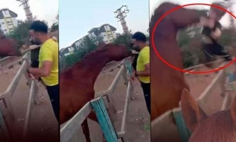 شهدت ولاية أنطاليا التركية واقعة صادمة، حين أقدم حصان على عض طفل يبلغ من العمر 3 سنوات بينما كان في حضن والده، ثم رفعه في الهواء لمسافة تجاوزت ثلاثة أمتار، في مشهد مروع وثقته عدسة هاتف محمول.